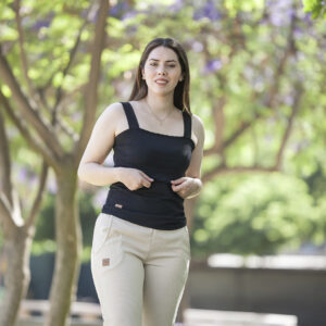 $17.990Modelo entallado con terminación recta, escote redondo con pabilo vuelo. Abertura de lactancia