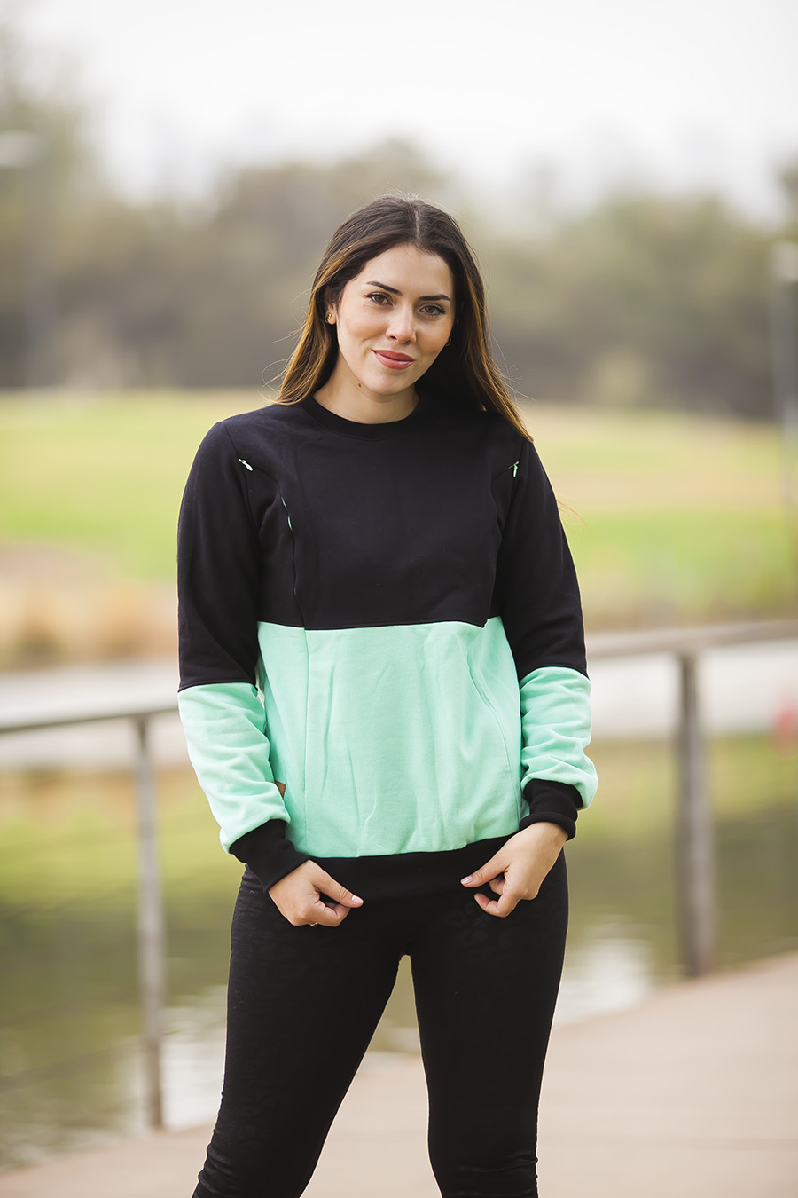 $20.990Combinación de tres colores, modelo oversize con manga corta y cuello cerrado en puño. Lleva cierres laterales para facilitar la lactancia