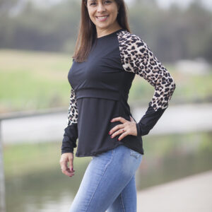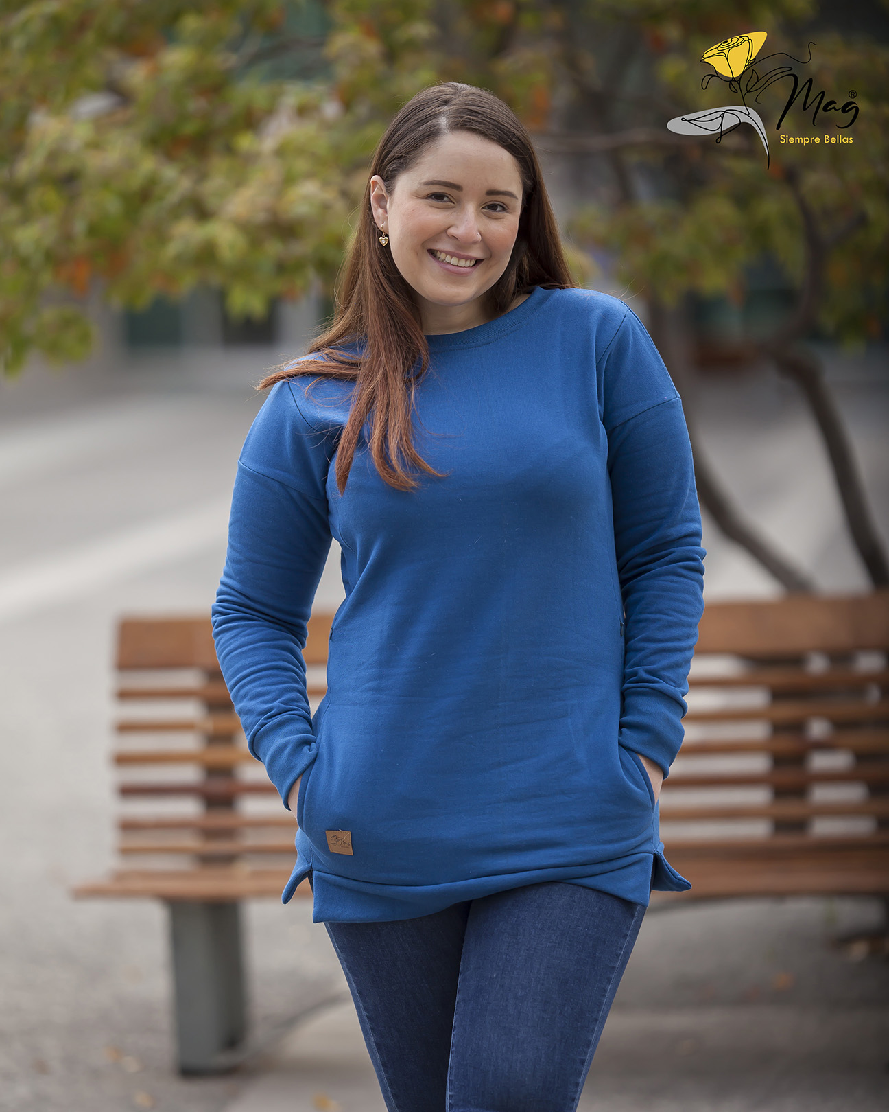 $18.990Modelo semi holgado con terminación ovalada, cuello cerrado y sus mangas largas con combinación desde el cuello. lleva abertura de lactancia