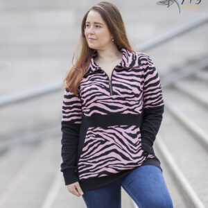 $33.990Modelo combinado en dos telas, recto semi entallado con terminación en puño, cuello alto y cierre completo. Bolsillo canguro con cierres laterales para facilitar la lactancia.