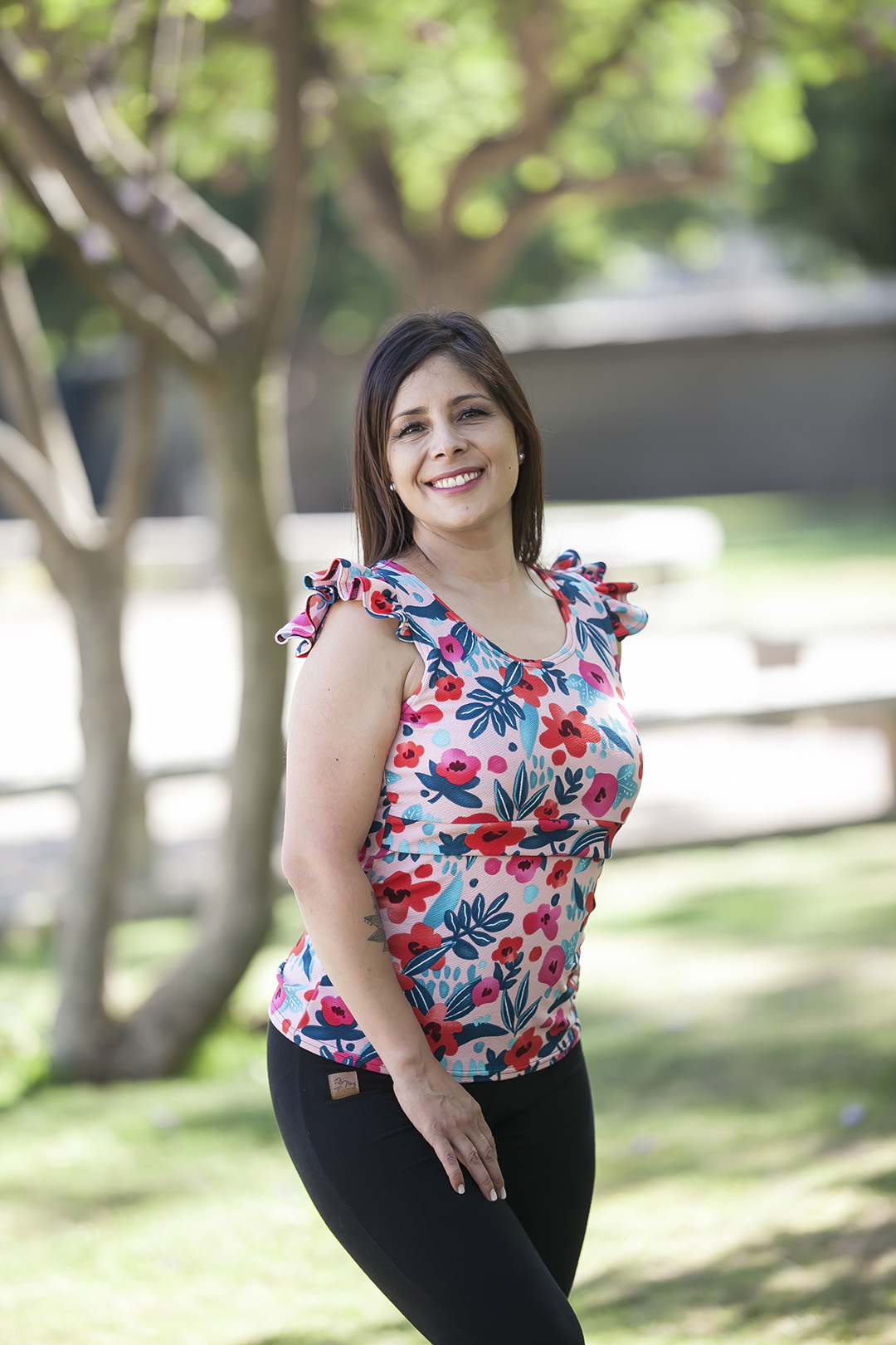Modelo entallado con terminación recta, escote redondo y mangas medio vuelo. Lleva abertura de lactancia. Puedes agregar hasta 5 cm de largo.