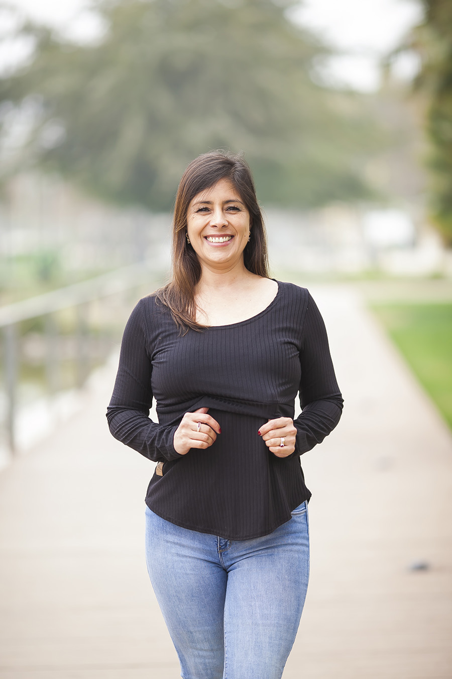 Modelo semi holgado con terminación ovalada, escote redondo, mangas largas. Lleva abertura de lactancia. Puedes agregar hasta 5 cm de largo.