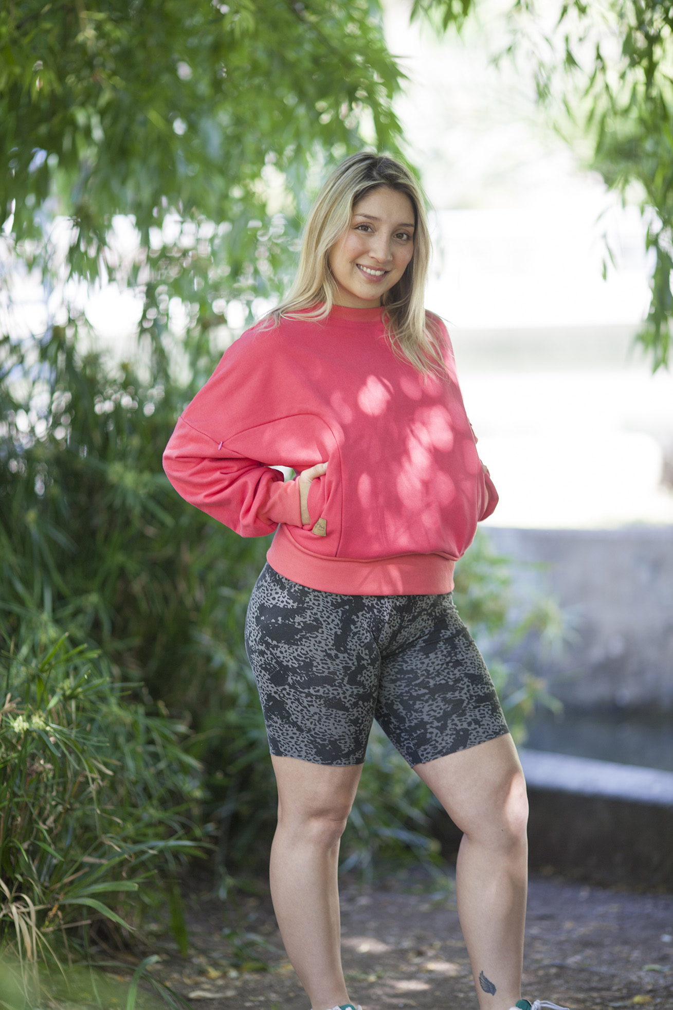 Modelo englobado con terminación en puño alto, cuello cerrado, mangas murciélagos. Bolsillos y cierres laterales para facilitar la lactancia.
