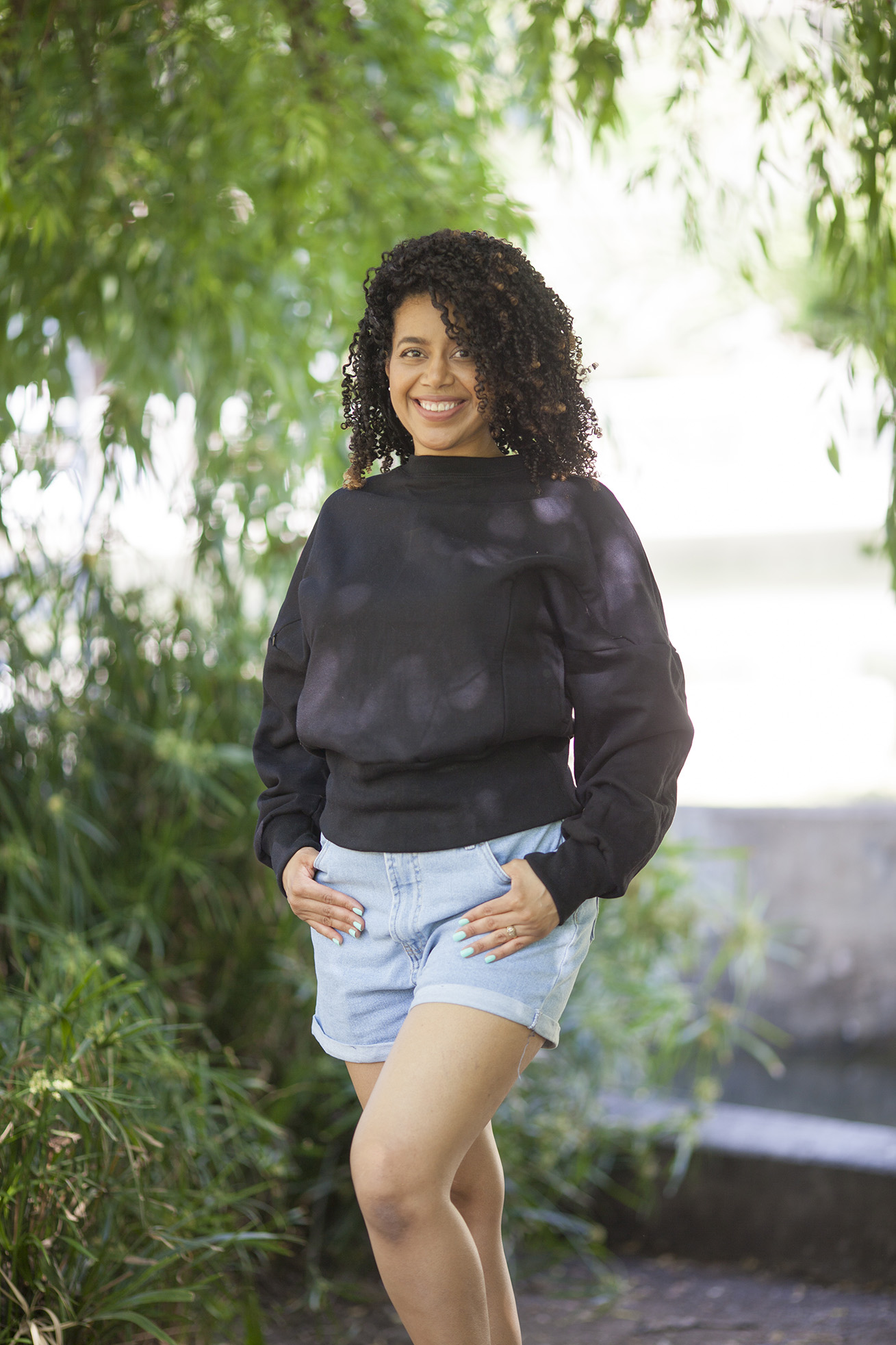 Modelo englobado con terminación en puño alto, tiene cuello cerrado, mangas murciélagos. Bolsillos y cierres laterales para facilitar la lactancia.