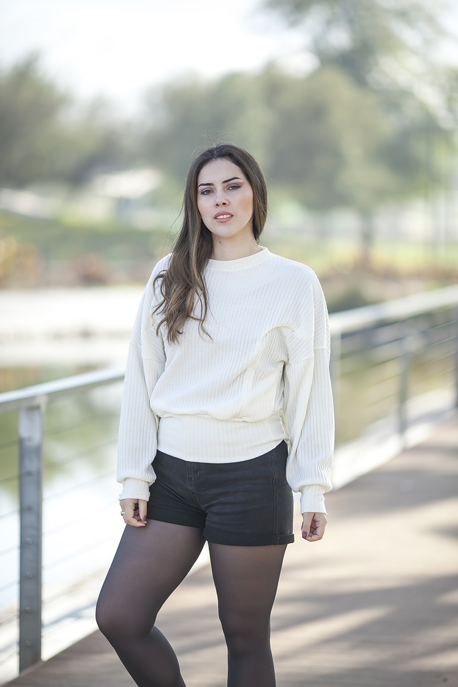 Modelo englobado con terminación de puño alto, cuello cerrado, mangas murciélago. Bolsillos y cierres laterales para facilitar la lactancia.